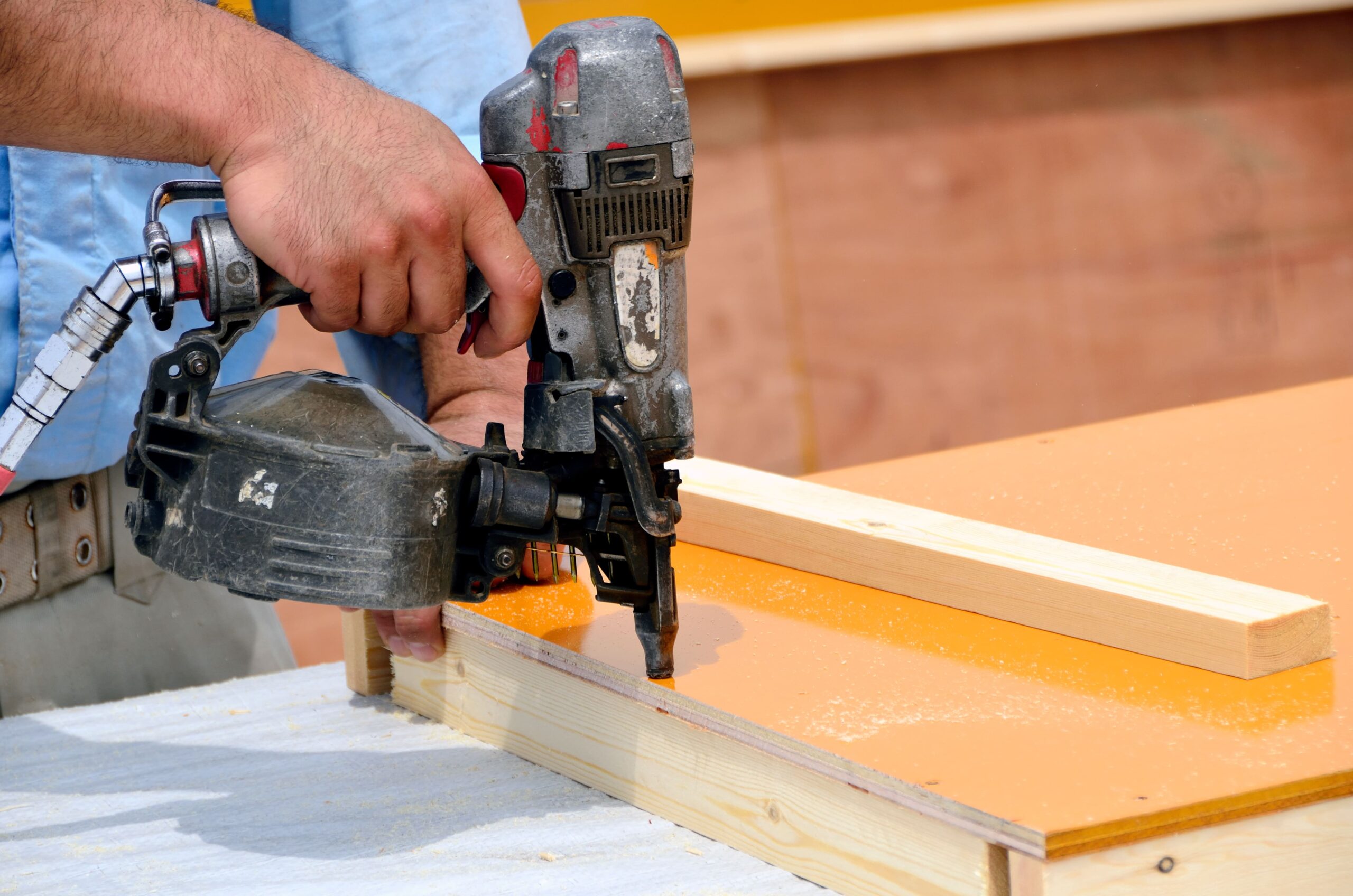 釘打機は型枠パネルの組み立てや桟木の固定に欠かせない工具で、手作業と比較して作業時間を大幅に短縮できます。特にコイル状に巻かれた釘を連続して打ち込めるタイプは、大型物件での作業に威力を発揮します。